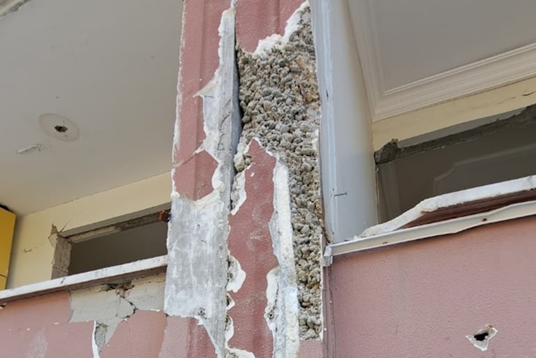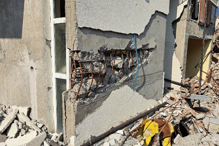 (a) Non-structural damage in a moment resisting frame in Antakya