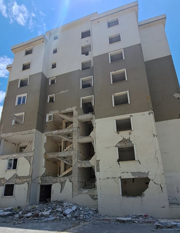Figures 3 (a) and (b) show the non-structural damage observed in moment resisting frame structures in Antakya and Malatya. A few aspects are worth highlighting: (1) despite very limited structural damage, the non-structural damage has rendered these structures unusable even four months after the earthquakes and for the foreseeable future; (2) the falling debris during the earthquake posed an additional hazard to the evacuating residents; and (3) the loss of non-structural components is closely related to the loss of building contents. Although it is unclear if these specific buildings will be repaired or demolished, it was observed that many (physically) repairable structures were being demolished due to the large repair and retrofitting costs, while other heavily damaged buildings were being repaired by their construction companies to avoid the associated reputational damage.